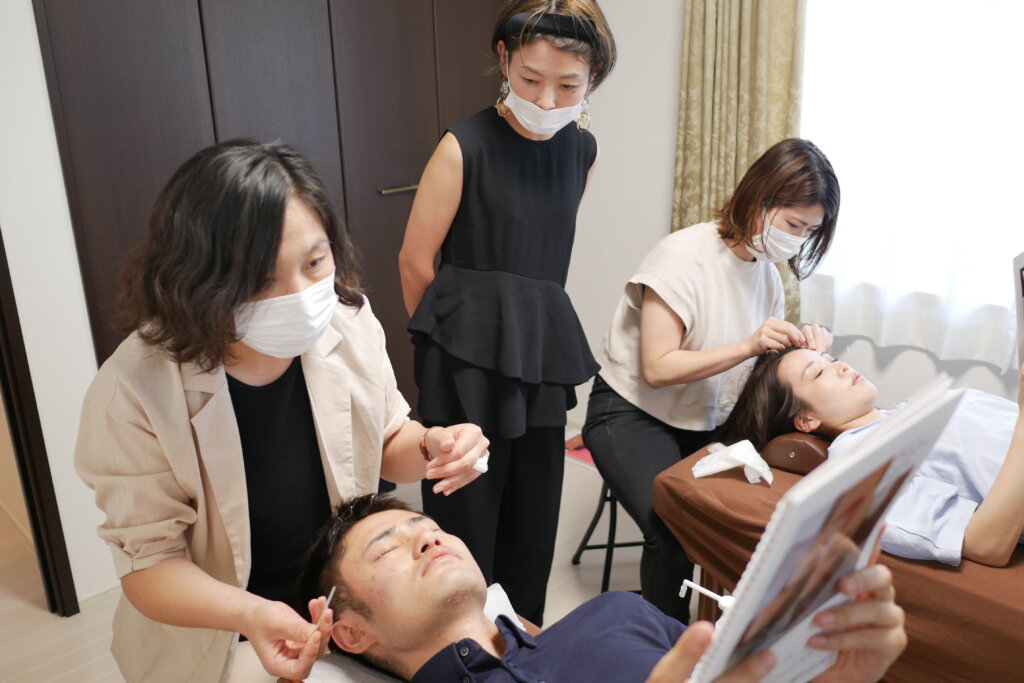 電気を流す美容鍼セミナーで技術を極め、知識を養う。