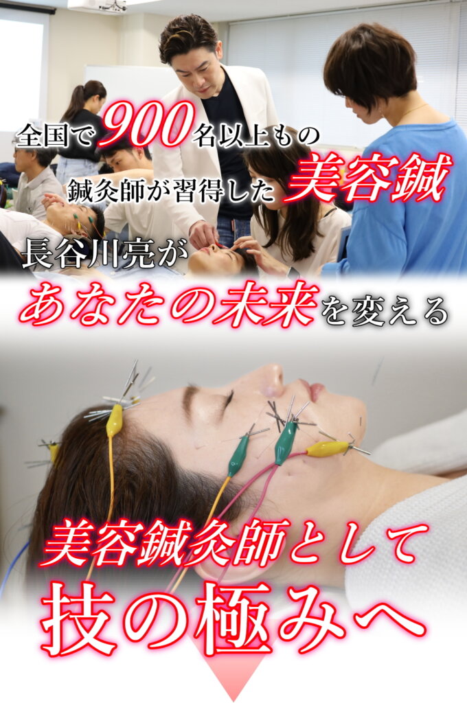 | セミナー講師 | 長谷川亮(鍼灸師、長谷川亮・鍼灸院 院長) ・アンチエイジング美容鍼研究会 代表 ・全日本美容鍼灸連盟 理事 ・日本抗加齢医学会認定 抗加齢指導士 ・美容鍼灸フェスタ講師 ・自身が考案した「商標名:アンチエイジング美容鍼」を中心に、延べ10万人以上の経験を積み重ね、愛知県名古屋市に長谷川亮・鍼灸院を開業。開業後、施術予約待ち患者数が2,000人を超えた実績を持つ |